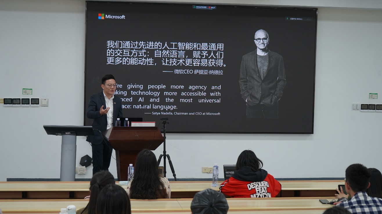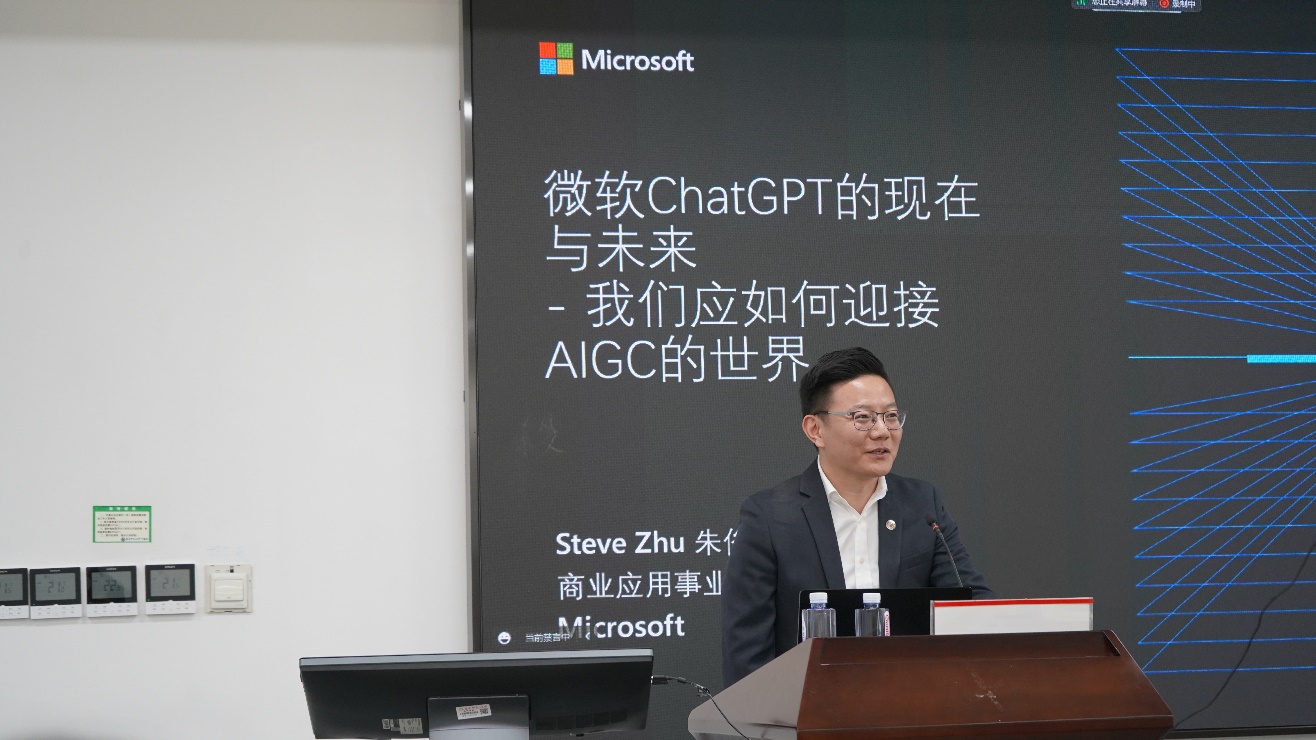 4月21日,必赢线路检测3003no1科创中心与丽娃译社共同主办的“语言学习的AI革命:ChatGPT在外语学科中的潜能与趋势”系列活动的第二场讲座圆满举行。本次讲座特邀我校2007届德语系校友,现任微软中国商业应用解决方案事业部中国区销售总监的朱俊,为大家解读在以ChatGPT的兴盛为代表的AI时代,语言专业学生如何积极地面对并使用相关技术。