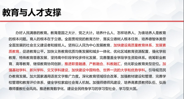 根据科技创新发展现状,纵观其他国家的发展经验,大国的崛起更需要人才和教育的支撑。沈桂龙结合二十大报告中的表述和实际的案例,强调要用更大力度地吸引人才、更重视本土育才,更好地统筹各类人才,更加重视知识人才等方面加强人才教育,强调了二十大报告中对于人才教育的相关表述:坚持各方面人才一起抓,建设规模宏大、结构合理、素质优良的人才队伍。加快建设世界重要人才中心和创新高地,促进人才区域合理布局和协调发展,着力形成人才国际竞争的比较优势。培养造就更多大师、战略科学家、一流科技领军人才和创新团队、青年科技人才、卓越工程师、大国工匠、高技能人才。加强人才国际交流,用好用活各类人才。