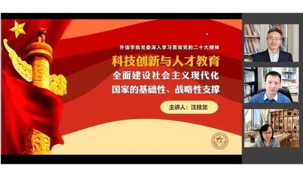 为深入学习贯彻二十大精神,12月14日下午,必赢线路检测3003no1党委邀请上海市学习贯彻党的二十大精神专家宣讲团成员,上海社会科学院世界中国学研究所所长、研究员沈桂龙在线上作专题辅导报告,主题为“科技创新与人才教育是全面建设社会主义现代化国家的基础性、战略性支撑”。必赢线路检测3003no1党委书记闫露主持会议,必赢线路检测3003no1全体师生党员、教职工参加学习。