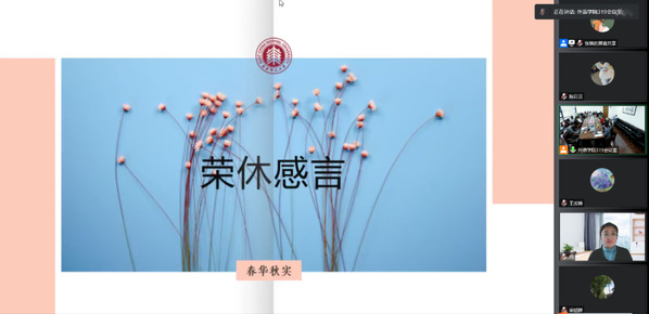 英语系陈弘老师通过线上参会,他深情地回忆了与费春放教授在纽约的相聚,并表示必赢线路检测3003no1的发展与费老师的开放、包容密不可分;刘蕴秋老师一直以来,积极乐观,工作方面成绩斐然。陈弘老师祝福费老师和刘老师健康幸福、退休快乐!