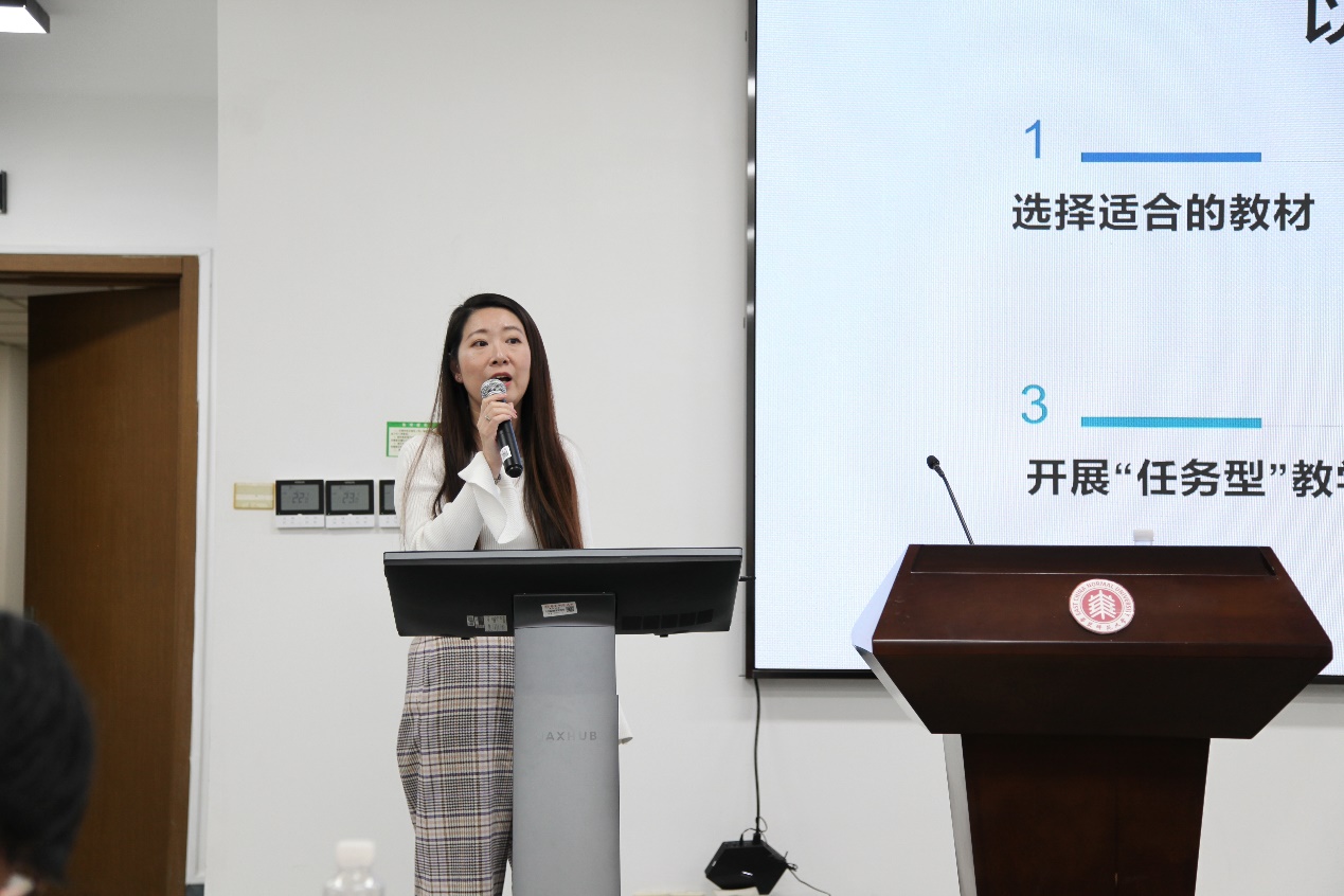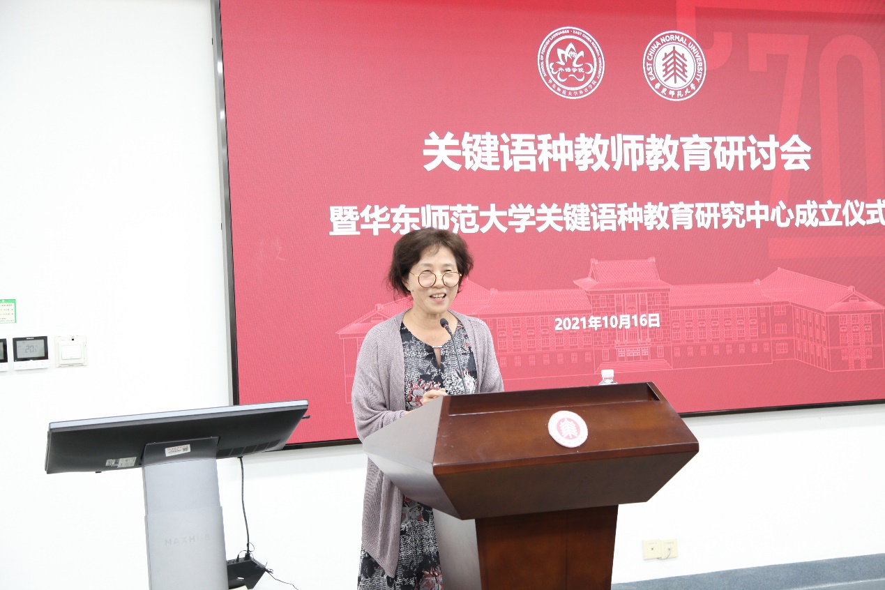 关键语种教育研究中心主任、华东师大日语系主任尹松以“中学日语教师教育的现状与课题”为题开展主旨报告。她从上海市中学多语种教学现状调查入手,指出了当前中学日语教师存在教学实践研究能力不足等挑战,提出大学教师可以在教学实践研修、基础数据收集、国际比较研究、教育教学衔接、教育理论构建等方面帮助中学日语教师提高教学水平,实现互帮互助,互利共赢,为适应时代变化,服务国家战略贡献己力。