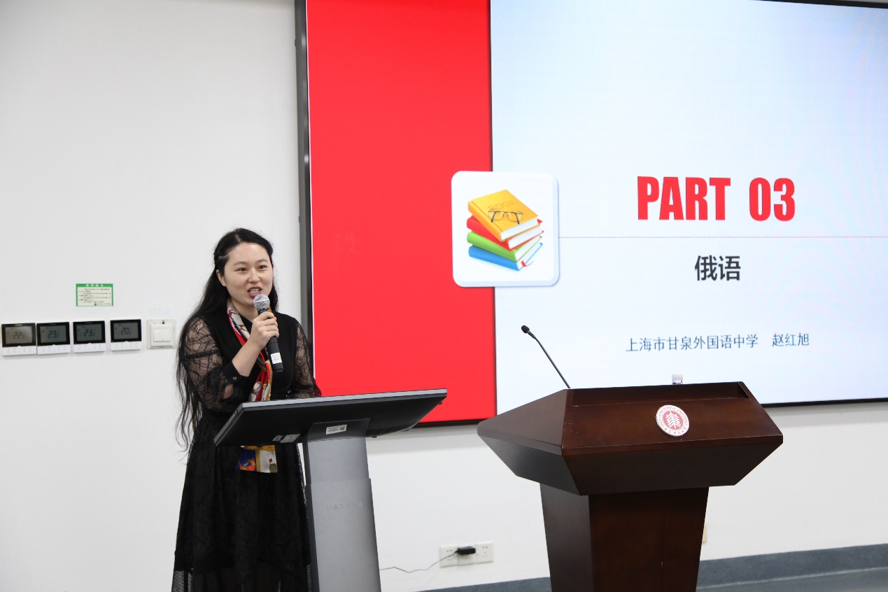 在随后的校友论坛上,上海市教育委员会教学研究室教研员郭侃亮、甘泉外国语中学日语教师王颖芳、甘泉外国语中学俄语教师赵红旭 、浦东外国语学校法语教师花威、闵行外国语中学德语教师赵苑琳、甘泉外国语中学西班牙语教师王媛媛就上海市中学关键语种的课堂教学与未来发展进行了汇报交流,从语言能力、文化意识、思维品质、学习能力等方面分享了自己在高中外语学科核心素养培育中的经验与体会。作为必赢线路检测3003no1优秀毕业生代表,他们已经在中学关键语种教学研究领域躬耕多年,为关键语种教学做出了突出的贡献。希望借以优秀校友的精彩分享,给予师生思想的启迪与行动的方向,为关键语种学科建设添砖加瓦。