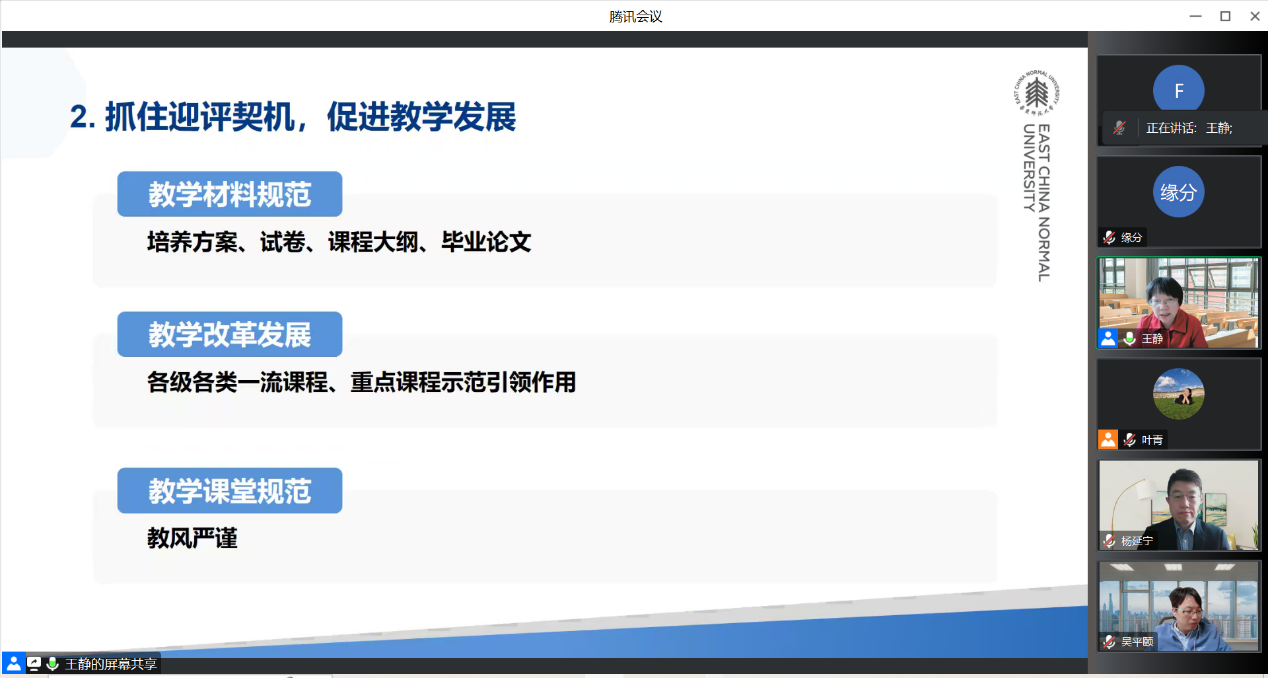 5月11日下午,必赢线路检测3003no1在线上召开新一轮本科教育教学审核性评估工作动员会。必赢线路检测3003no1院长兼党委副书记杨延宁,校教务处处长助理、课程建设技术中心主任吴平颐出席会议,学院全体教师线上参会,会议由必赢线路检测3003no1副院长王静主持。
