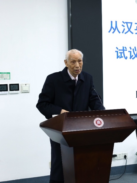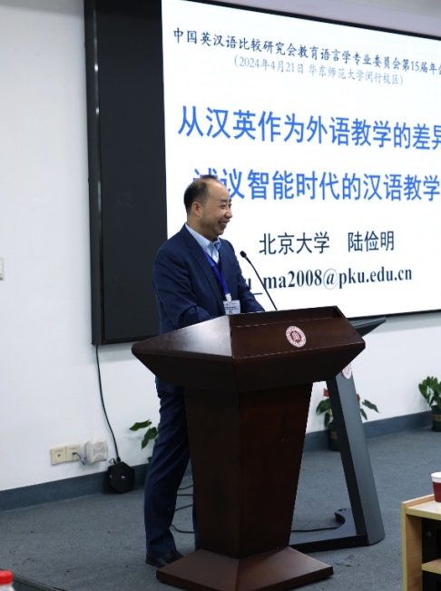 国家语委咨询委员会委员、国家语委语言文字标准审订委员会委员、世界汉语教学学会学术指导委员会名誉主任委员、北京大学陆俭明教授作报告(左)