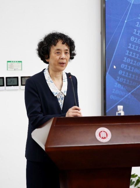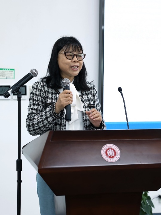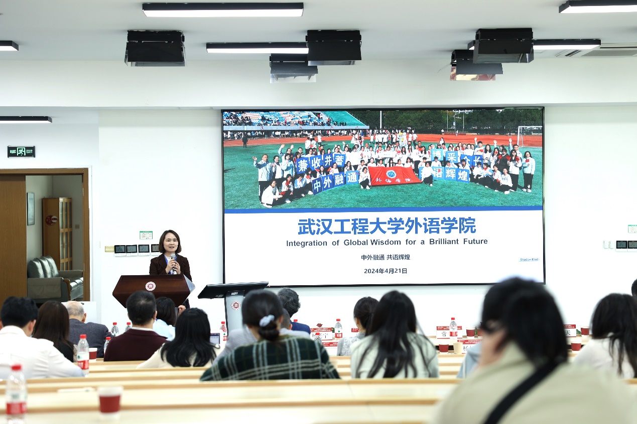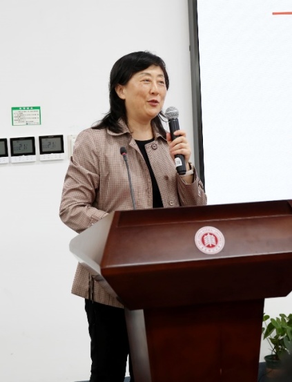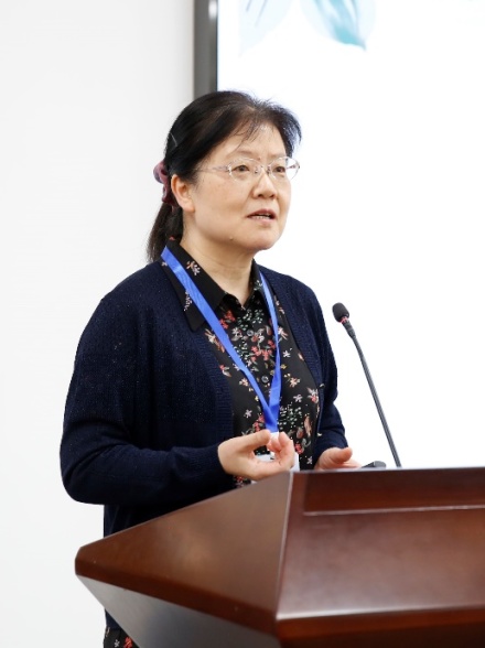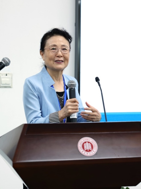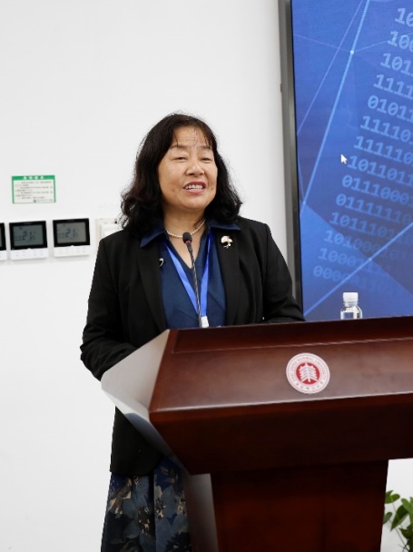 全国大学英语四、六级考试委员会主任、上海交通大学金艳教授作报告(左)