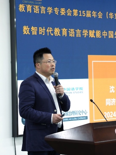 教育语言学专业委员会会长、上海交通大学外国语学院院长常辉在致辞中回顾了教育语言学研究在中国的发展历程,并介绍了教育语言学会的基本情况。他认为,教育语言学研究者要关注“理论-实践-社会”三者之间的关系,在实践过程中更加关注社会现实,让教育语言学的最新研究成果为社会进步和人类福祉服务。他强调,教育语言学“一方面需要研究教育中的语言问题,如基础教育、外语教育、中文教育以及特殊教育;另一方面要研究教育语言教育中的一些问题,如翻译教学、文学教学、关键语种教学、少数民族语言教育等。”他希望通过本次大会,与会师生能够交流思想、碰撞灵感、拓宽思维,不断增强信息化素养,同时能够向社会辐射教育语言学的价值和意义,不断增强教育语言学的社会影响力。