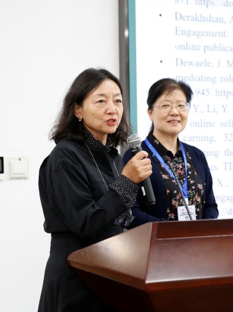 徐锦芬教授在报告“智能课堂下大学生英语自主学习策略、自我效能和学习投入的结构方程建模分析”中通过定量的方法揭示了学生在智能课堂中的自主学习策略、自我效能和学习投入三个变量之间的相互关系,为未来智能课堂环境中英语学习的教学实践和学术研究提供了宝贵的启示和理论支撑。浙大城市学院王慧莉教授主持。