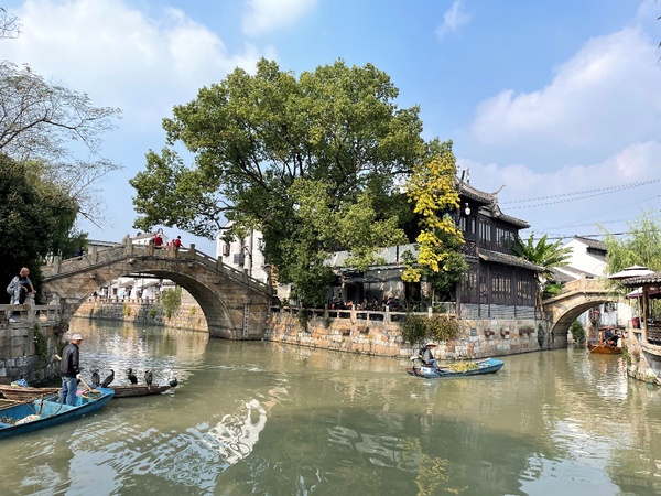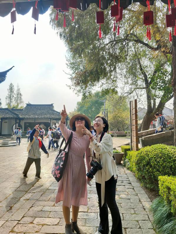 下午1点30分,大巴又载着外院的老师们前往枫泾古镇,去梦里水乡感受秋日的气息。枫泾古镇素有东方威尼斯之称。古镇周边水网遍布,镇上人家历来傍河而居。河道上船来船往,交通、购物十分方便。
