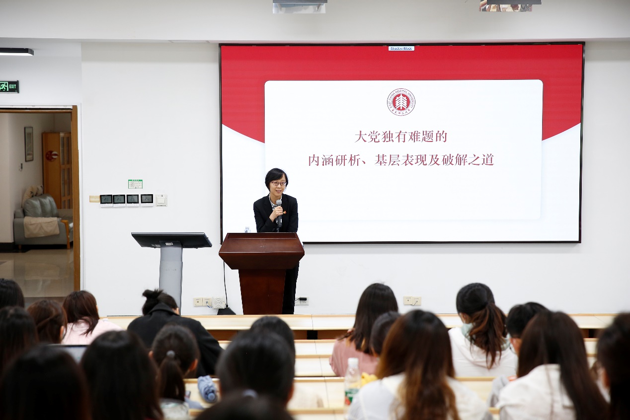 学院党委副书记兼副院长江宇靖以“大党独有难题的内涵研析、基层表现及破解之道”为题为全体毕业生党员上党课。从“李万铭政治诈骗”谈起,江宇靖引导同学们思考大党必须解决的“六个如何始终”独有难题,进而探讨其生成原因及破解之道。希望毕业生党员们走上社会后,能够坚持不懈用习近平新时代中国特色社会主义思想武装头脑,牢固树立纪律意识和规矩意识,争做“有理想、敢担当、能吃苦、肯奋斗”的新时代好青年。