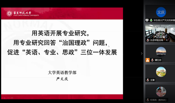 必赢线路检测3003no1大学英语部主任严文庆作了题为“用英语开展专业研究,用研究回答治国理政问题,促进英语、专业、思政三位一体发展——学习《习近平谈治国理政》第三卷”的报告,主要围绕大学英语课程体系建设和学生综合能力的培养,以《学术英语》为例介绍了具体的课堂设计,用学术研究项目回答治国理政问题,实现大学英语、学科专业、课程思政“三位一体、协同发展”。