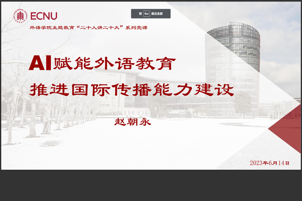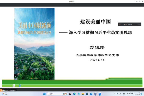 6月14日上午,大学英语教学部教工党支部在腾讯会议开展主题党日活动。党支部书记苏俊玲主讲“建设美丽中国”——深入学习贯彻习近平生态文明思想微党课,必赢线路检测3003no1副院长赵朝永主讲“AI赋能外语教育,推进国际传播能力建设”微党课。苏俊玲主持会议。